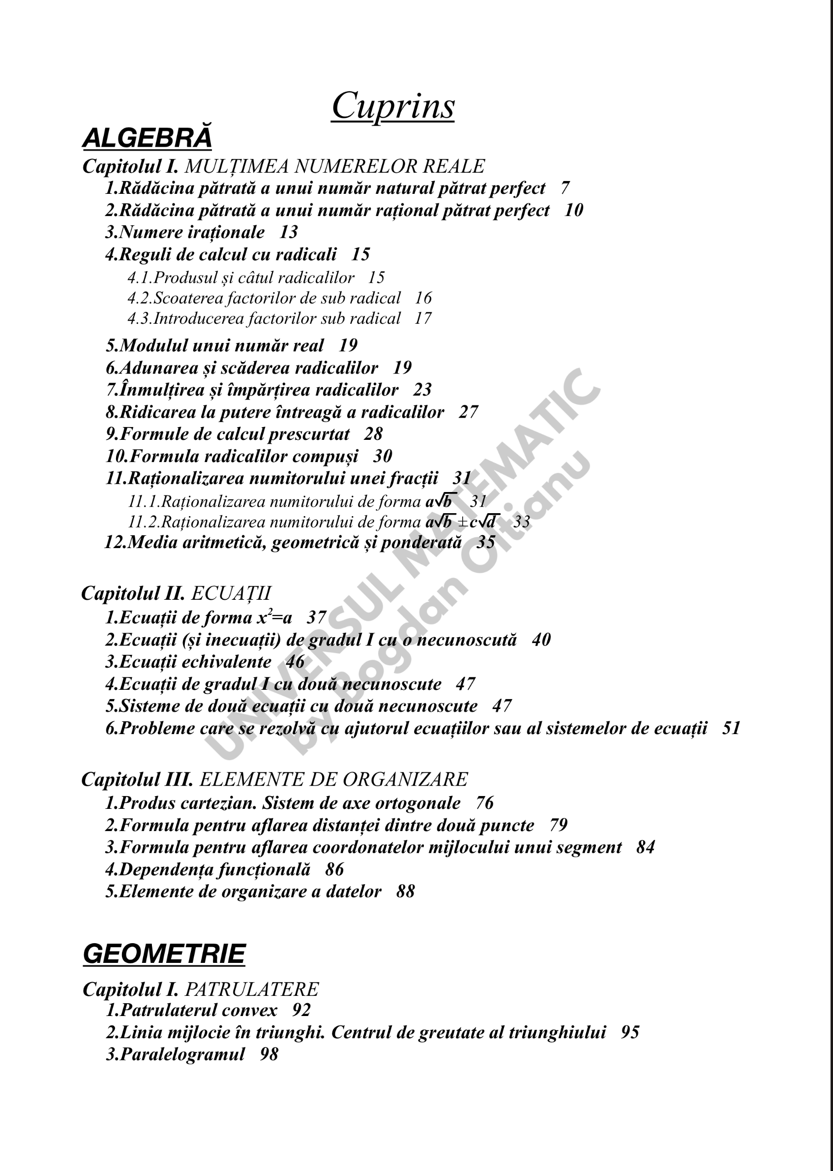 Toată materia de clasa a VII-a explicată simplu și clar, cu sute de exerciții rezolvate pas cu pas, pentru ca matematica să fie mai ușor de înțeles și de aplicat.